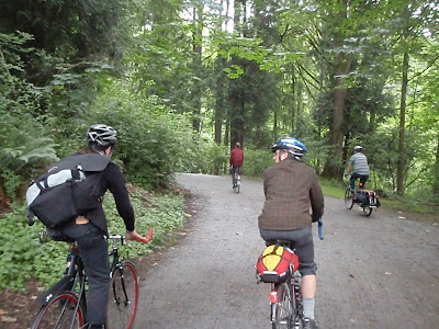 Totally meant to go on the Portland ride, but I had an unfortunate incident involving my beard, a poorly fastened SPD sandal, an opossum carcass, an unexpected pot-hole full of industrial effluent, a well-sealed package of mustard, an overly dry sandwich, the twitchy handling of my race recumbent, and a heated conversation about which Farrah Fawcett poster was the best one (it's the one with the nipple). Also, it was raining.
