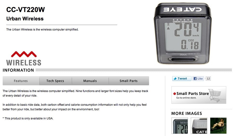 Of course, if you really want to be cutting-edge, you should pair your belt drive with the Cateye "Urban Wireless" cycling computer, which will tell you your "carbon offset:"