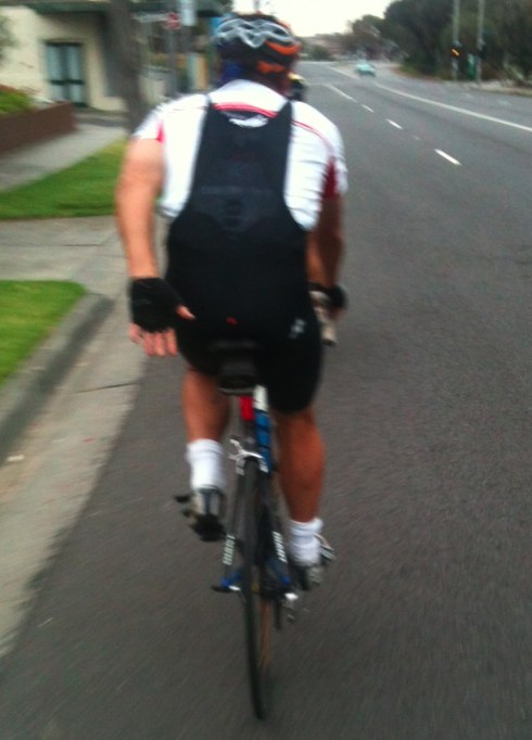 i used to wear bib-shorts over jersey before, but in this context it's embarrassing. oh well. somehow i thought it's warmer that way, but it's obviously placebo.