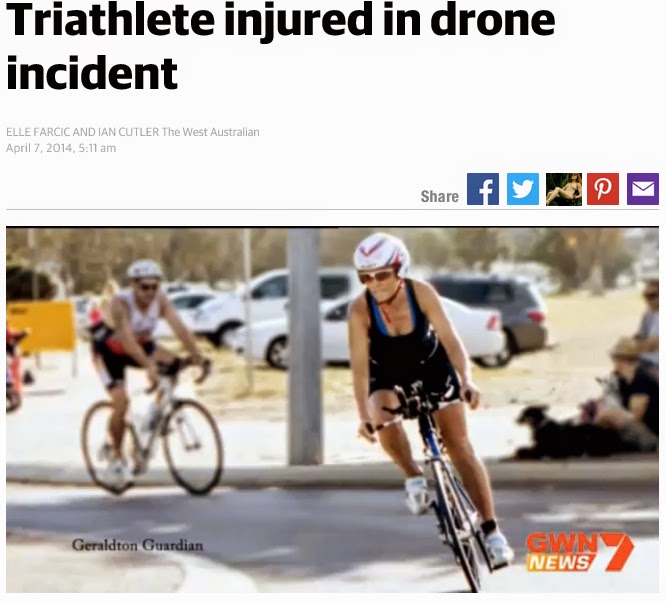 An experienced triathlete was injured yesterday when an aerial drone crashed to the ground during the Endure Batavia Triathlon in Geraldton.