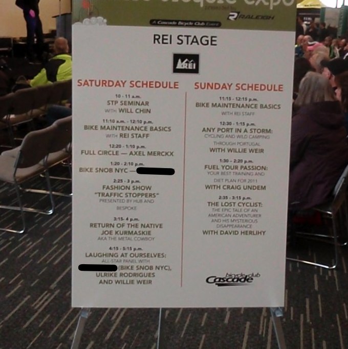 My first order of business was to figure out what time I went on the REI stage, brought to you by REI, an REI production, and so I consulted the schedule: