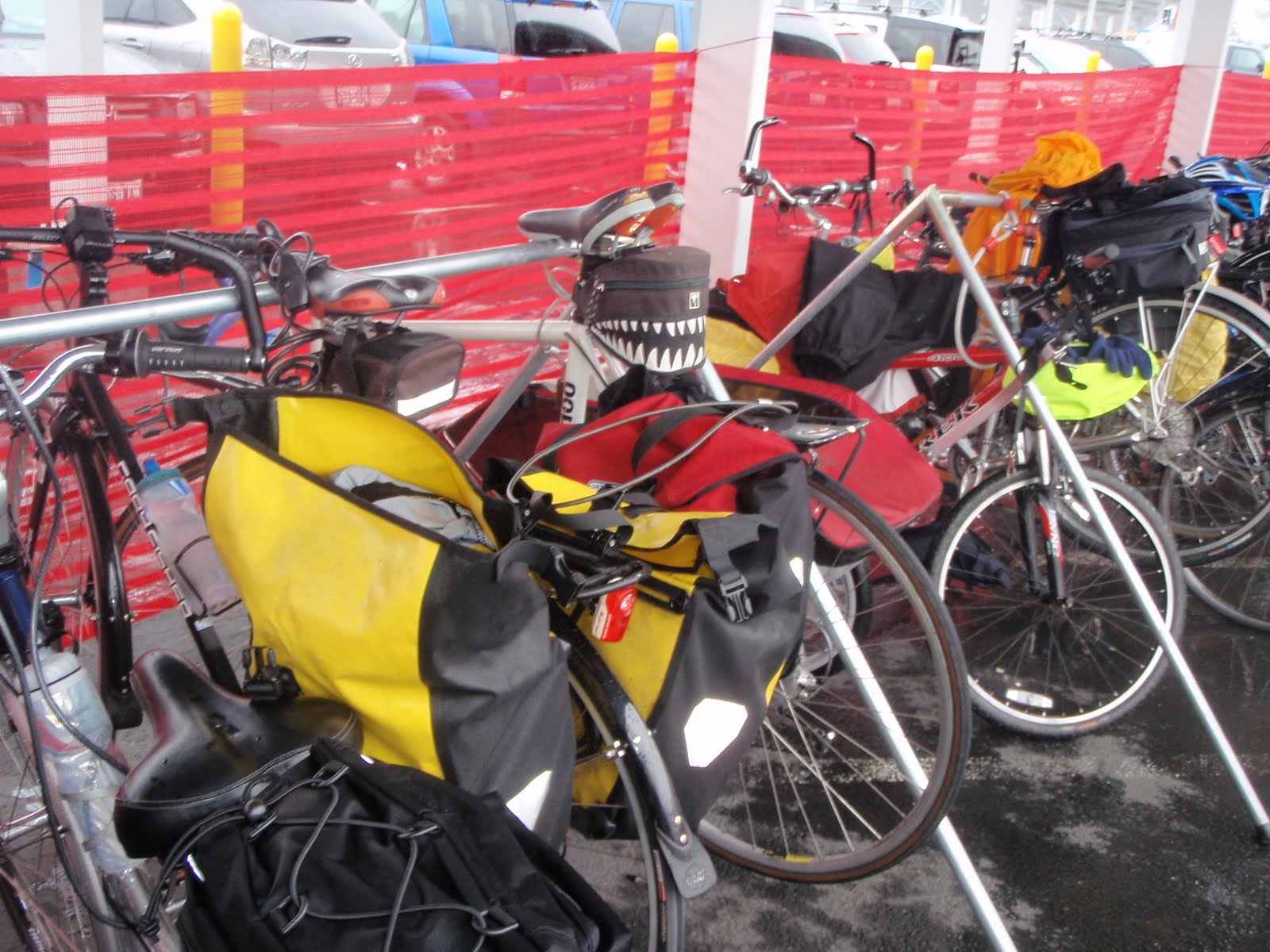 There were corny saddlebags and vertical bar ends as far as the eye can see: