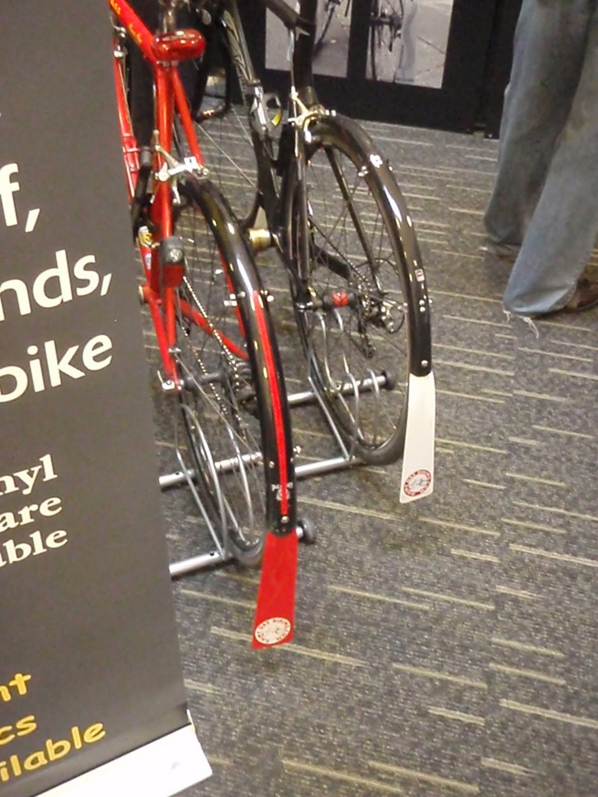 I understand CycleAware is working on a new helmet mirror that will allow you to safely admire the graphic of your own Primal jersey while you ride.Speaking of Freds, the more ambitious ones like to hire coaches, and the Wenzel Coaching booth featured a man riding eternally on rollers: